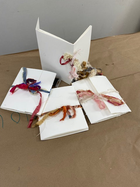 Last week at Articulations, we started out by making our own journals. Thank you to Journaler S for sharing Sari Silks and yarns for our bindings.